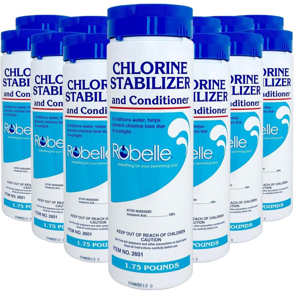 Robelle 1.75-Pounds Premium Chlorine Stabilizer and Conditioner, Concentrated Cyanuric Acid for Pools, Pool Stabilizer, Helps Chlorine Last Longer, Made in USA(12-Pack)