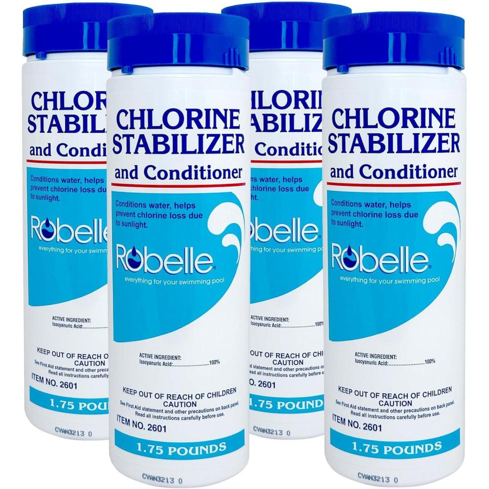 Robelle 1.75-Pounds Premium Chlorine Stabilizer and Conditioner, Concentrated Cyanuric Acid for Pools, Pool Stabilizer, Helps Chlorine Last Longer, Made in USA(4-Pack)