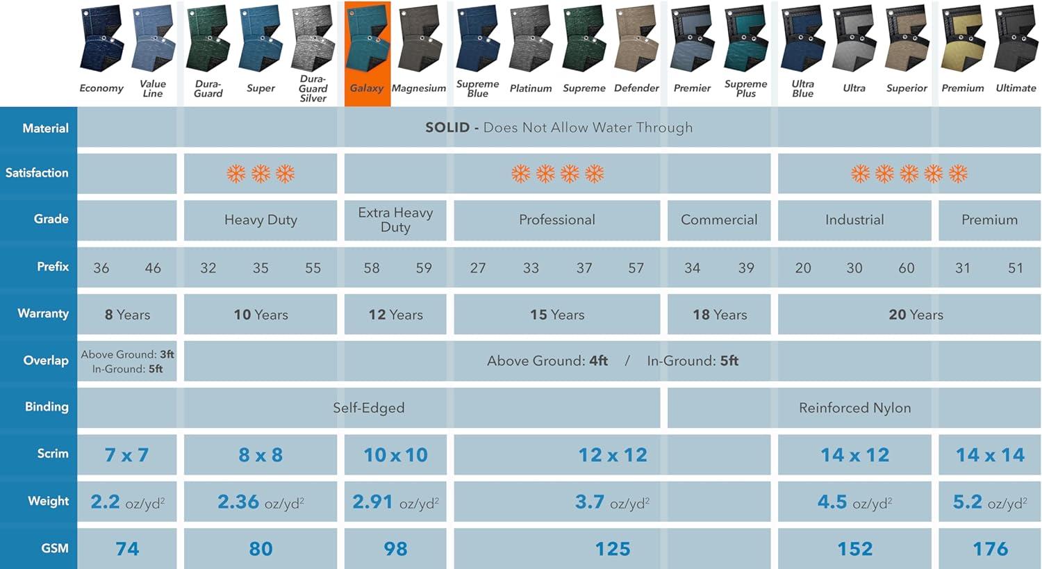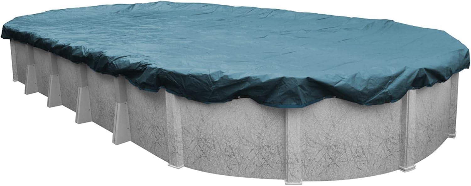 The Robelle Super Winter Pool Cover is a heavy-duty solid winter pool cover. Solid pool covers do not allow water to pass through their material. The Robelle Super Winter Pool Cover features a heavy-duty 8 x 8 scrim. The heavy-duty polyethylene material used for this cover weighs 2.36 oz./yd2. Both the scrim count and material weight are the best indicators of the strength and durability for your pool cover. This is a heavy-duty pool cover designed to protect your pool from the winter elements. The Robelle Super Winter Pool Cover features an imperial blue topside and a black underside. Please order by your pool size, as the overlap goes beyond the pool size listed. This cover includes a four-foot overlap. If you have a very large top rail, please consider a larger pool size. This cover should be able to comfortably float on the pool water without excessive stress. This cover is not meant to be used as a debris cover during the swimming season. This winter pool cover is intended to be used during the off-season. This cover is meant for traditional above ground pools with a traditional top rail. Includes a winch and cable that should be used to secure your pool cover through the grommets around the perimeter of the pool cover. For extra securing, cover clips and cover wrap (both sold separately) are suggested for pool closing. No other method of installation is recommended..