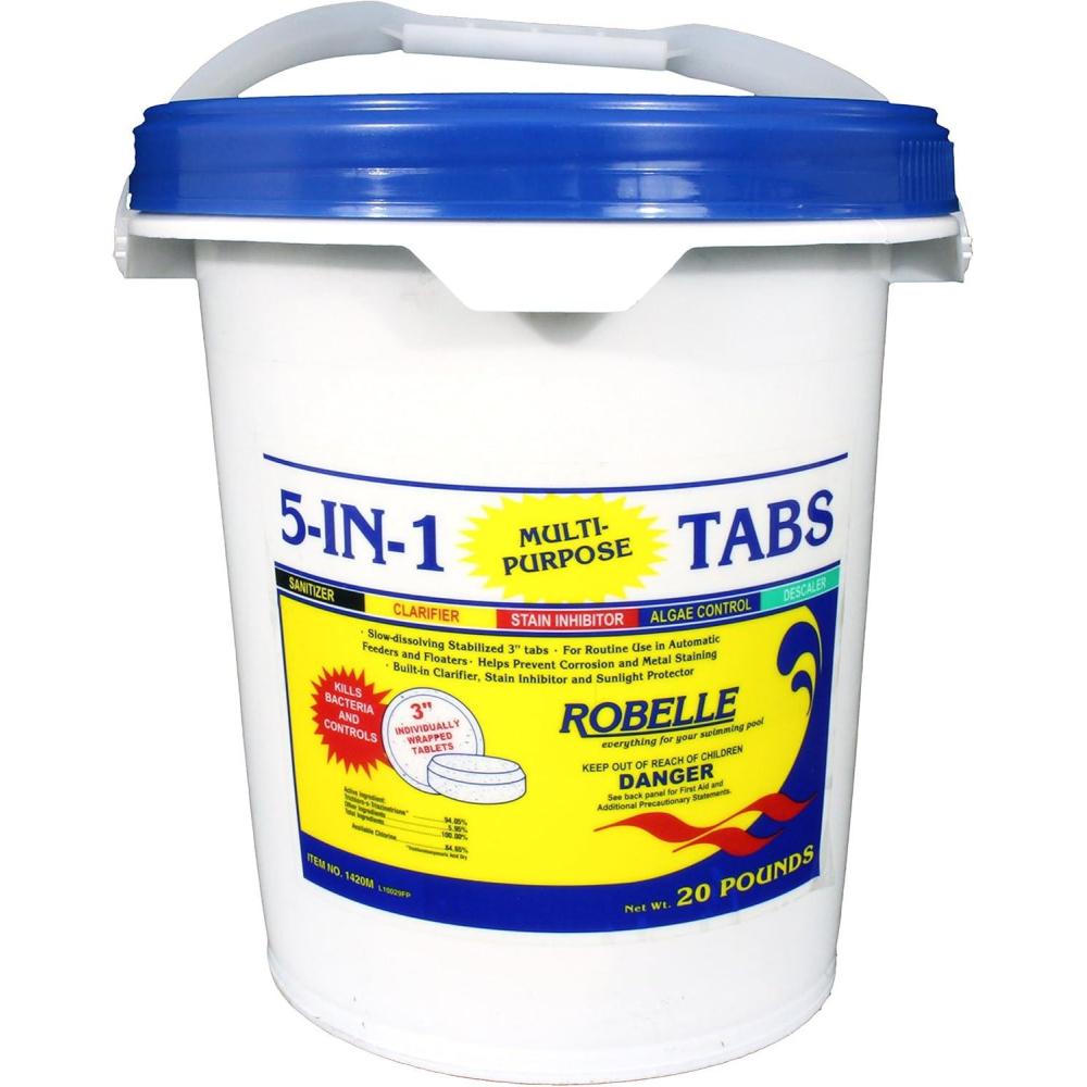 Robelle 20-Pounds Premium 5-In-1 Multi-Purpose Tabs, Chlorine Tablets 3 Inch, Sanitizer, Clarifier, Stain Inhibitor, Algae Control, Descaler, Sunlight Protector All In One, Made In USA(20-Pounds)