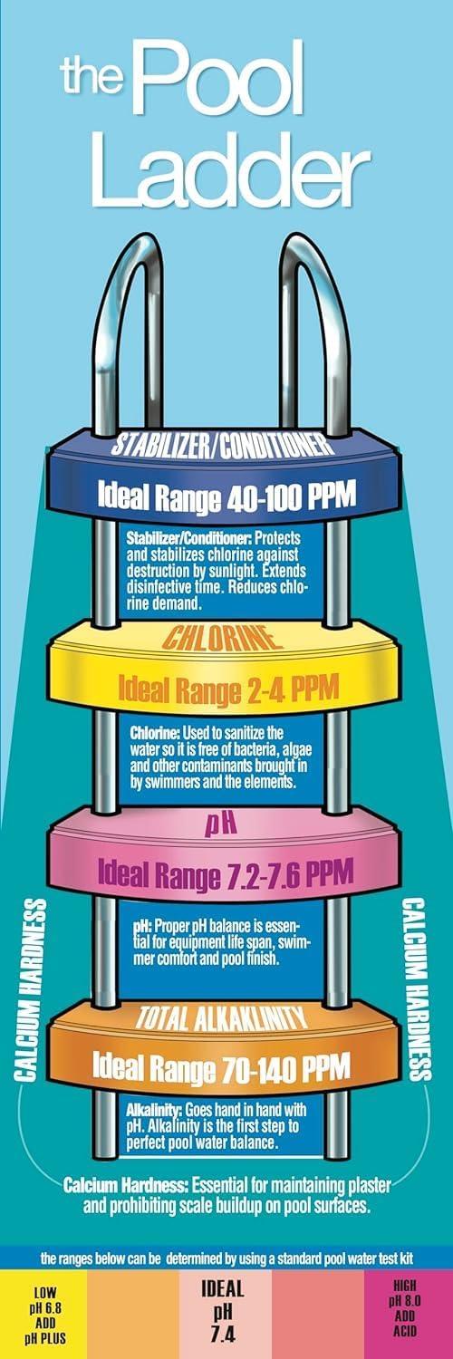 Pool sanitization with 3 Inch Tablets. For use in feeders or floaters. Kills bacteria and controls algae, clarifies, prevents metal staining and corrosion, and reduces scale formation. A) Important Notes: 1. Shock your pool every week. 2. Sunlight, rainfall, temperature, number of swimmers and frequency of pool use affect the rate of chlorine residual loss. Adjust cleaning and chemical maintenance accordingly. 3. Use this product in an automatic feeder or floater. 4. Do not add other chemicals into the feeder or floater where this product. 5. To avoid damage to pool surface or materials do not allow product to come in direct contact. Do not throw tablets directly into pool. B) Before your begin: 1. Ensure all pool equipment is working. Adjust stabilizer levels to 40-100 ppm with a Stabilizer. 2. Test the water's pH, alkalinity, and calcium hardness and adjust to the correct level. Adjust pH to 7.4 – 7.6. 3. Check the free available chlorine level and adjust to 2-4 ppm by adding a granular chlorinating product. C) Start-Up: 1. If water is cloudy or green, superchlorinate pool with appropriate shock product until pool is clear. 2. Add 16 ounces of this product per 10,000 gallons of pool water to feeder or floater and then test for the free available chlorine level (allow water to circulate at least 4 hours before testing). Adjust the feeder or floater following manufacturer's instructions to establish a free available chlorine level between 2-4 ppm. 3. When free available chlorine level is adjusted to 2-4 ppm, add an algaecide. D) Maintenance: Add 16 ounces of this product per 10,000 gallons of pool water per week, or as often as needed, to the feeder or floater to maintain a constant free available chlorine level of 2-4 ppm. Reentry into treated swimming pools is prohibited when free available chlorine levels are above 3 ppm due to risk of bodily injury.