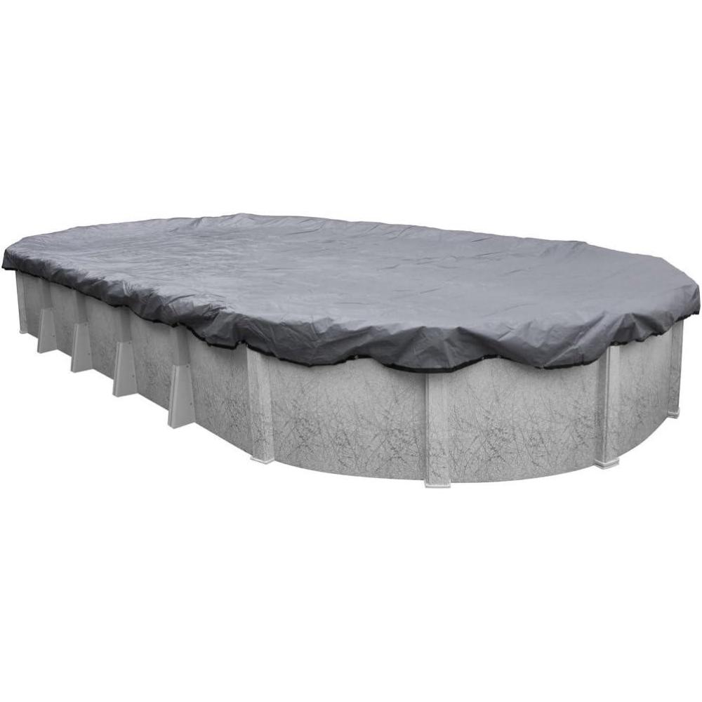 The Robelle Silver Premium Mesh XL Winter Pool Cover is an extra heavy-duty mesh winter pool cover. Mesh pool covers allow water to pass through their material. This is an extra heavy-duty pool cover designed to protect your pool from the winter elements. Customers buy mesh pool covers because they require less maintenance than solid pool covers during the winter months. Mesh pool covers are also good for high wind situations as the material sits in the pool water. Pool owners that use a mesh pool cover typically will have additional work cleaning their pool in the spring before opening. The Robelle Silver Premium Mesh XL Winter Pool Cover features a silver color. Please order by your pool size, as the overlap goes beyond the pool size listed. This cover includes a four-foot overlap. If you have a very large top rail, please consider a larger pool size. This cover should be able to comfortably float in the pool water without excessive stress. This cover is not meant to be used as a debris cover during the swimming season. This winter pool cover is intended to be used during the off-season. This cover is meant for traditional above ground pools with a traditional top rail. Includes a winch and cable that should be used to secure your pool cover through the grommets around the perimeter of the pool cover. For extra securing, cover clips and cover wrap (both sold separately) are suggested for pool closing. No other method of installation is recommended. Includes a fifteen year warranty.