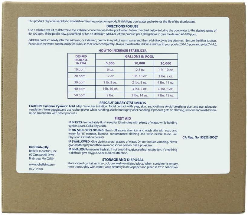 Robelle 7-Pounds Premium Chlorine Stabilizer and Conditioner, Concentrated Cyanuric Acid for Pools, Pool Stabilizer, Helps Chlorine Last Longer, Made in USA(32-Pounds)