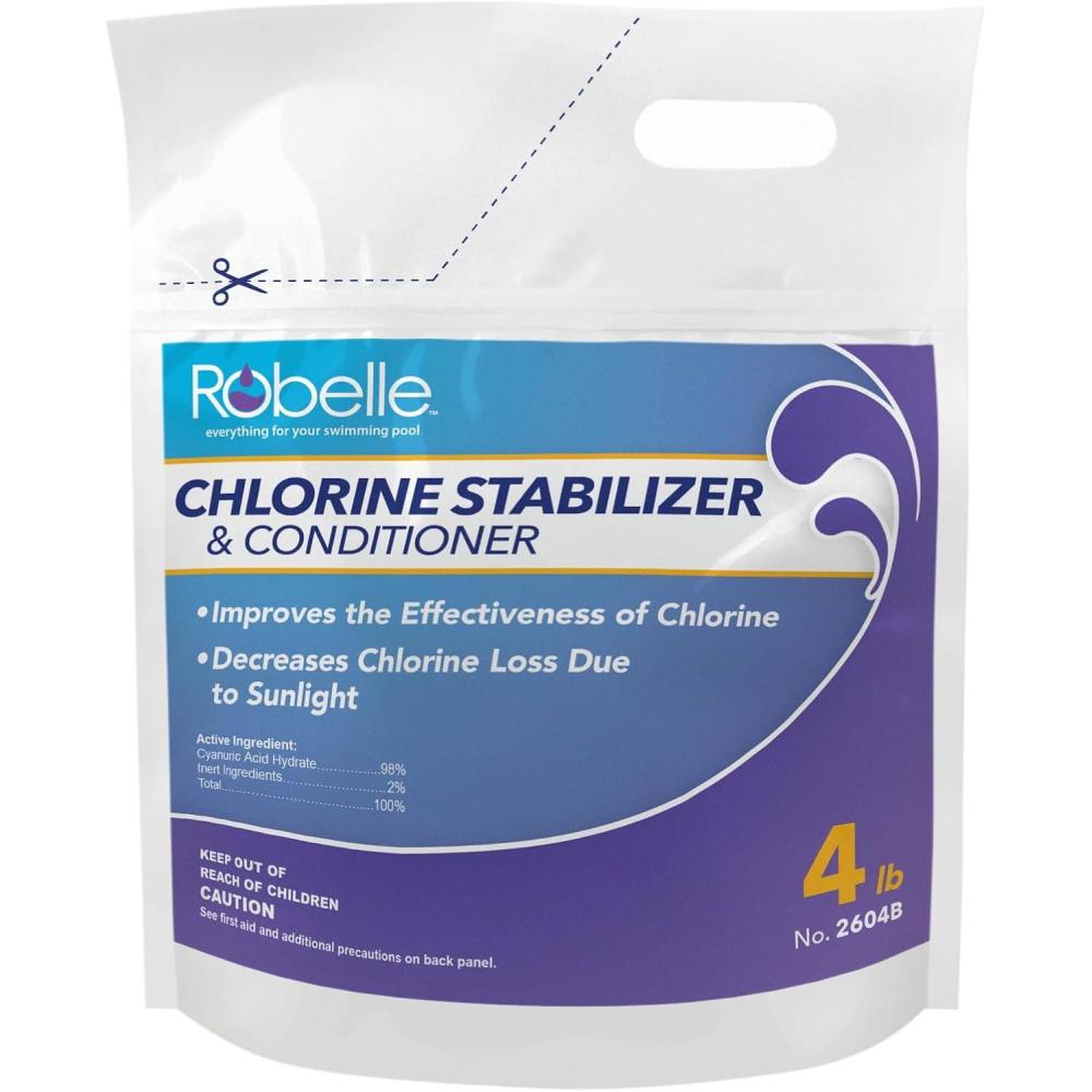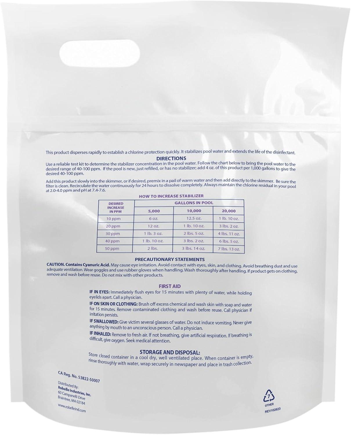 Robelle 7-Pounds Premium Chlorine Stabilizer and Conditioner, Concentrated Cyanuric Acid for Pools, Pool Stabilizer, Helps Chlorine Last Longer, Made in USA(4-Pounds)