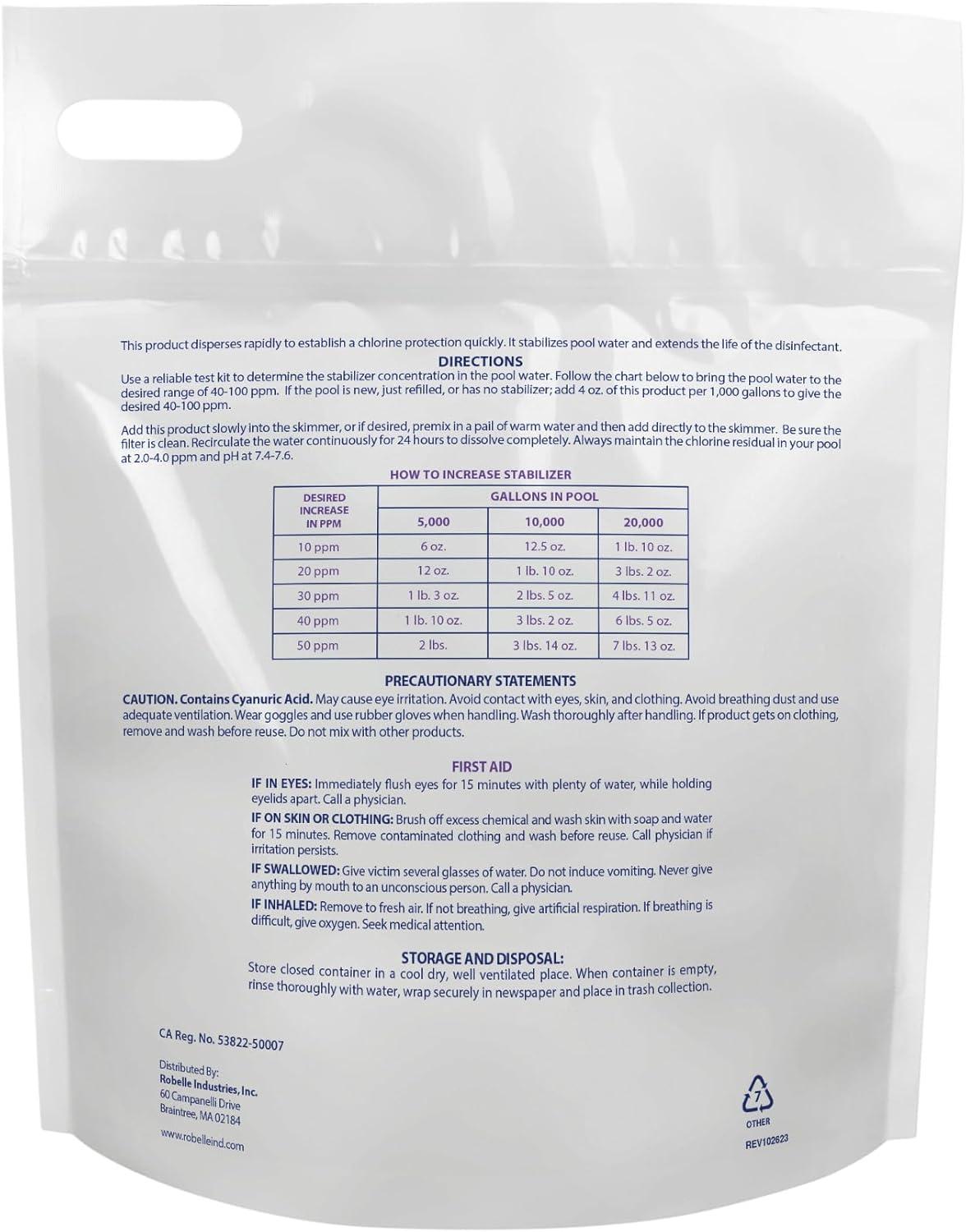 Robelle 7-Pounds Premium Chlorine Stabilizer and Conditioner, Concentrated Cyanuric Acid for Pools, Pool Stabilizer, Helps Chlorine Last Longer(5-Pounds)